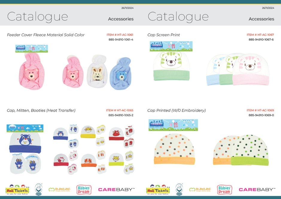 Complete your baby's outfit with our range of stylish and practical apparel accessories. From hats and booties to bibs and mittens, these accessories add the perfect finishing touch to your baby's wardrobe while keeping them comfortable and protected.